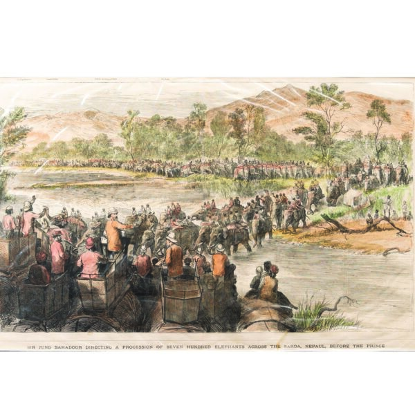 SIR JUNG BAHADOOR DIRECTING A PROCESSION OF SEVEN HUNDRED ELEPHANTS ACROSS THE SARDA, NEPAUL, BEFORE THE PRINCE