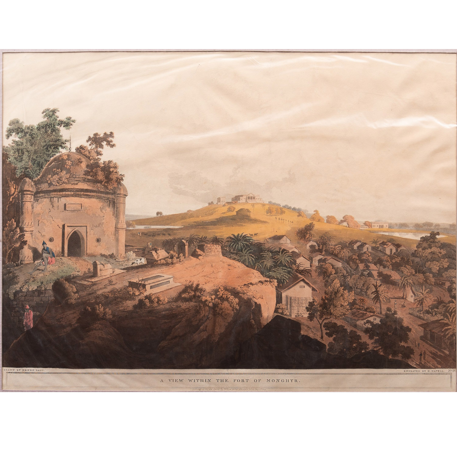 Henry Salt (1780 – 1827), was an artist, traveller, collector of antiquities and a diplomat who extensively travelled through the African and Indian sub-continent. From 1816, he served as Counsel General of Egypt and was appointed fellow of the Royal Society. The paintings, papers, and artefacts he collected remain in the possession of the British Museum who acquired these from him over many years during his adventurous life. His portrayal of India had a strong element of capturing nature and the ancient ruins among them. They are often reminiscent of the past. The landscapes are captured in wide perspective and the monuments tower in the background while human figures appear small, in the distance or right next to the object of focus. It was a display of metaphor that our past, our ancestry and our environment outlived the mere mortality of humans.