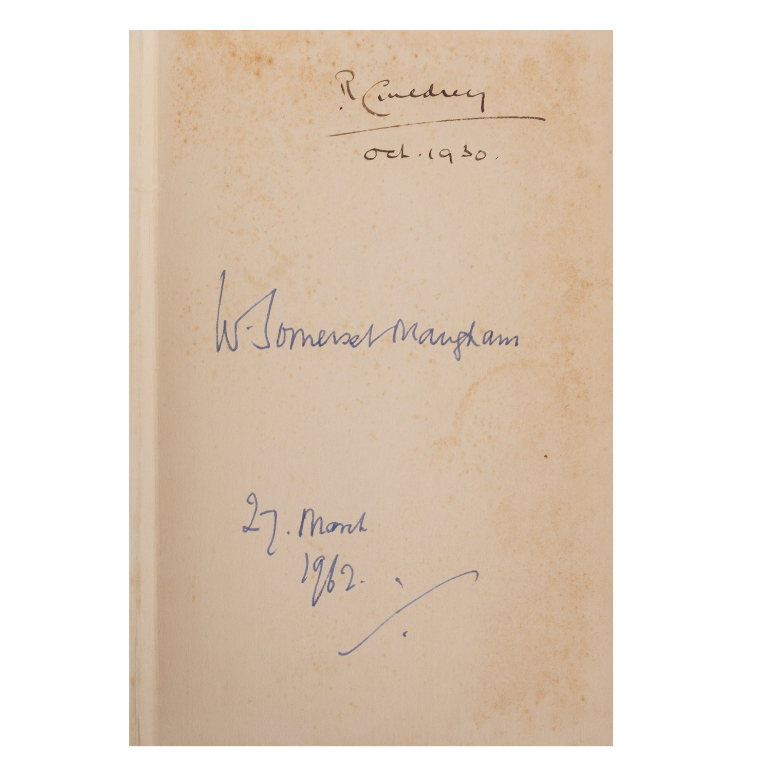 This book is in overall fine condition but the spine is a bit loose, with navy blue hard cover cloth binding with the author signature dated “27t March 1962”.It is the first U.K.edition which comes along with a newspaper cutting of the author’s obituary in the year 1965. The book is an interesting satire of London literary society between the World Wars.