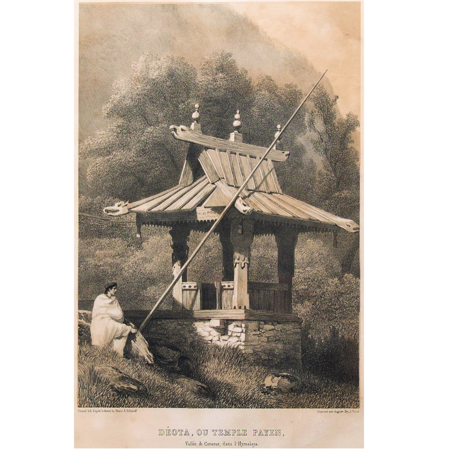 Prince Alexis Soltykoff (or: Aleksandr Mikhailovich Saltuikov / Aleksei Dmitrievich Saltykov) was born in 1806 in St. Petersburg as a member of an influential and wealthy family. He was a gifted painter and sketcher who, after a relatively short career in the Russian diplomatic service, settled down in Paris around 1840. From there he travelled to the East twice (1841-1843 and 1845-1846) and crossed the Indian subcontinent. After his return to Paris from the second voyage he had his letters as sent to one of his brothers, published under the title Letters sur l’Inde (Paris: Amyot, 1848). Some of the drawings he had made on the spot during his voyages were lithographed and appeared in this book, published in octavo format, for the very first time. In 1850 these drawings were lithographed by De Rudder and published by Augusta Bry in a large folio format under the title Voyages dans l’Inde, after which several subsequent editions were published in octavo format under that same title, first by Comer & Lecou and a subsequent edition by GarnierFr’res.