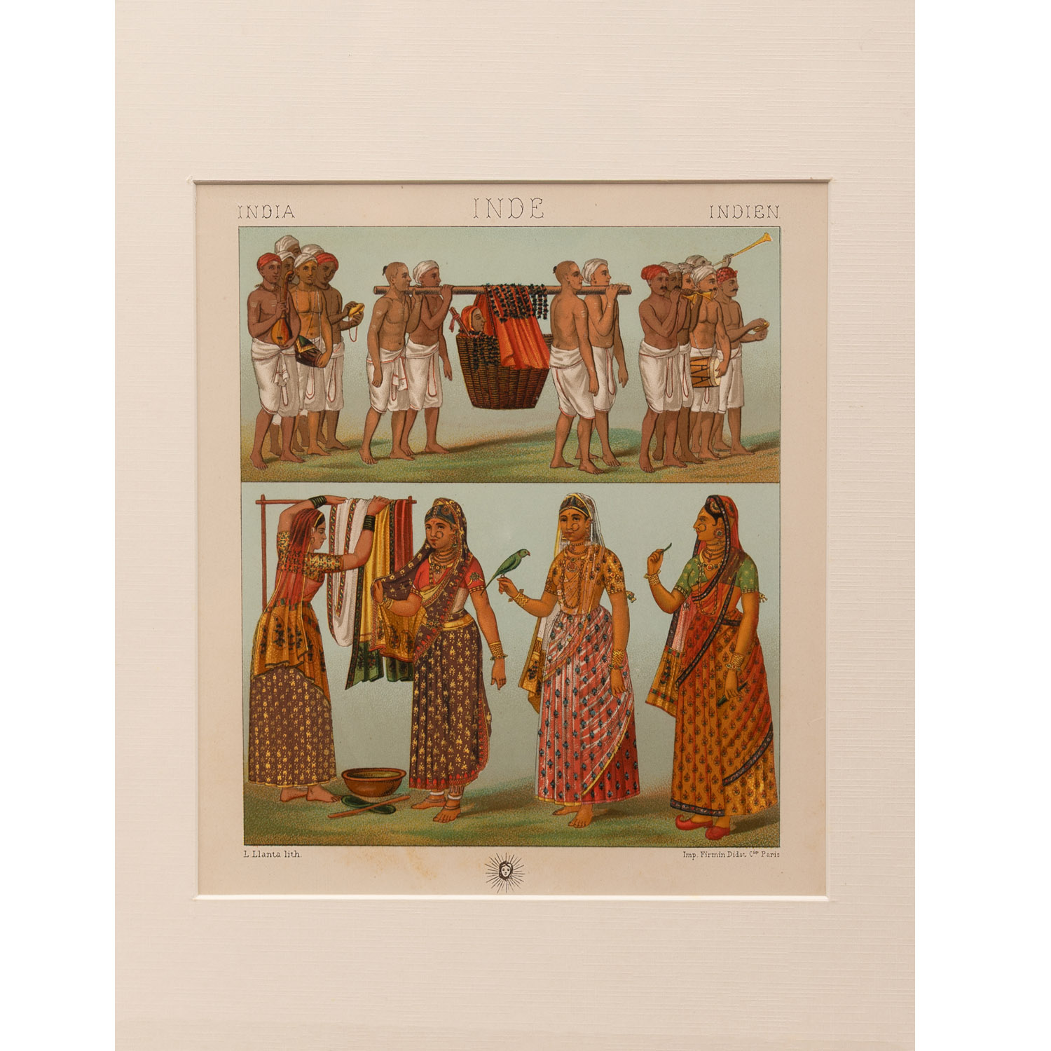 Racine’s ‘Le Costume Histories’ is the most famous of the 19th-century books on dress, and the first fashion book to use colour lithography. It is a wide-ranging survey of costumes through time. Publication was made possible by significant developments in colour printing technology, and a resurgence of interest in ‘the other’ as a new period of European colonialism gathered pace from the mid-19th century. The emphasis here is on recognising continuity in traditional dress, rather than innovation in fashion, and linking costume to local history, custom and social organisation. Racinet was keen to produce a visually appealing book that deployed chromolithography to full effect; in his enthusiasm he sometimes toyed with authenticity by adding colour to some of his sources. His representations of Indian fashion are largely inspired by miniature paintings from the collection of French lithographer Firming Didot.
