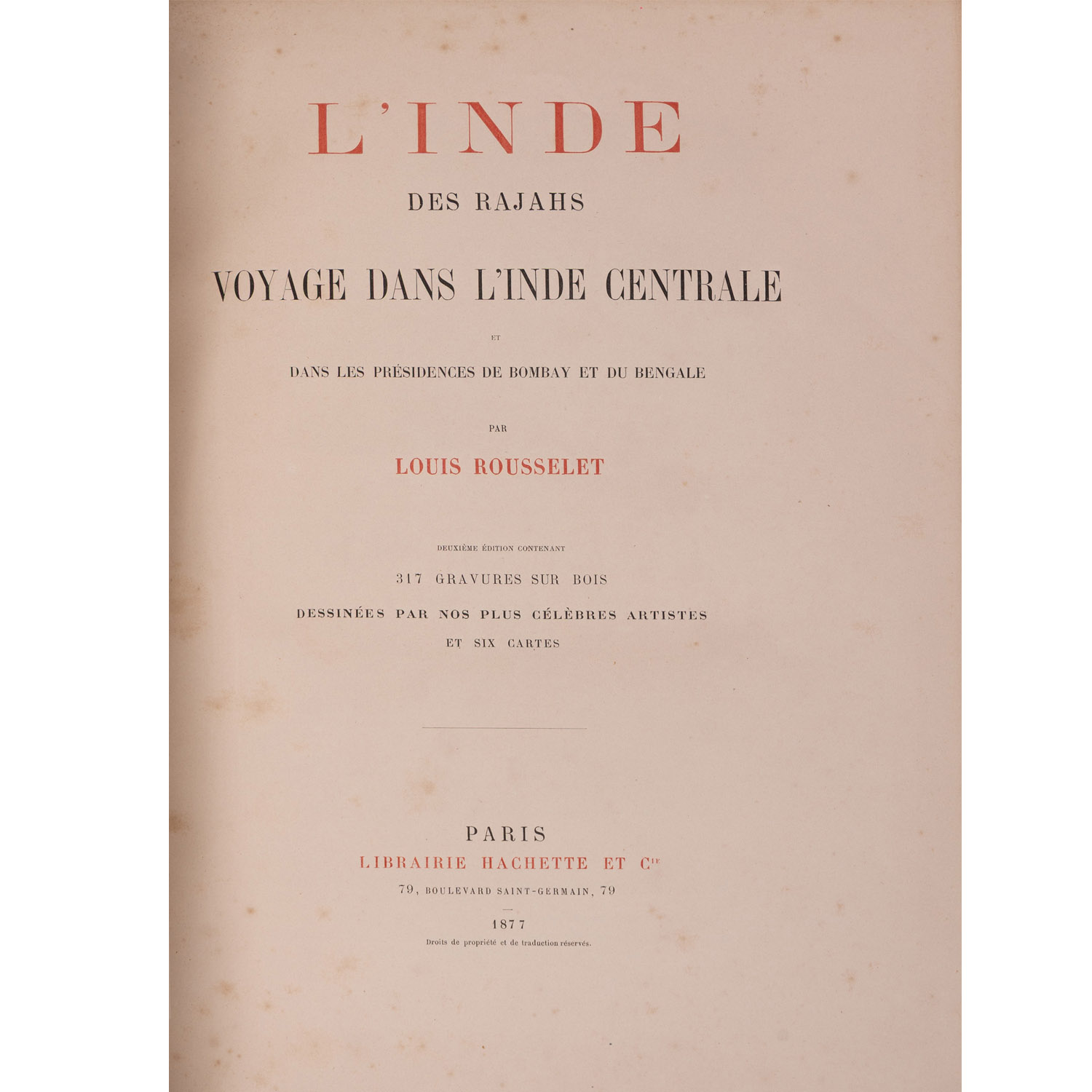 Beautiful book on India illustrated with 1 map of India, 1 inset map of Bombay and 4 maps in colours apart from 317 woodcuts in and out text, faithfully drawn by artists of the time after the author’s photographs. Louis Rousselet (1845-1929), geographer, French archaeologist and photographer, made several journeys as ethnological and archaeological, which he drew an important documentary work on India from 1864 to 1870.