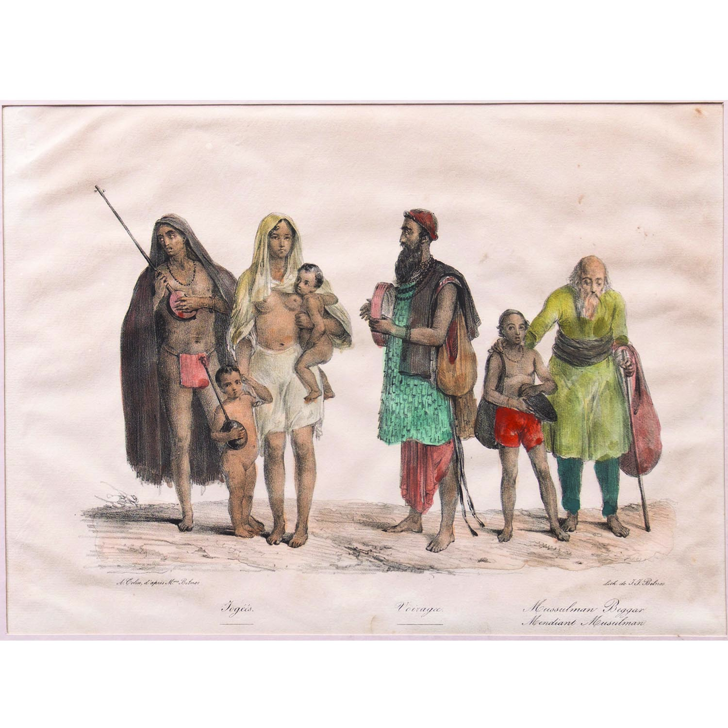 Relatively little is known about Mrs. Belnos. Her husband, Jean-Jacques Belnos, was a French miniaturist and lithographer, who had travelled to India in 1807, and established a practice in Calcutta as a painter of miniatures and portraits of the British, a business which his widow seems to have continued following his death’ . Abbey speculates that Mrs Belnos was Indian, but she was in fact almost certainly the daughter of William Moore, assistant surgeon in the Bengal army. This seems to be her second and last published work, following Twenty four Plates Illustrative of Hindoo and European Manners in Bengal, which appeared in 1832.