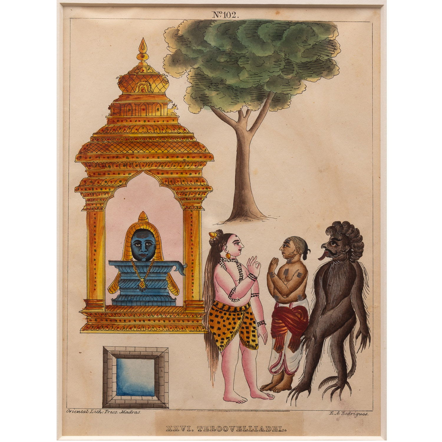 This Plate is from the Deities Worshipped by the natives of British India throughout Hindoostan. These were drawn by the native artists and was one of the earliest lithograph published in Madras, India.