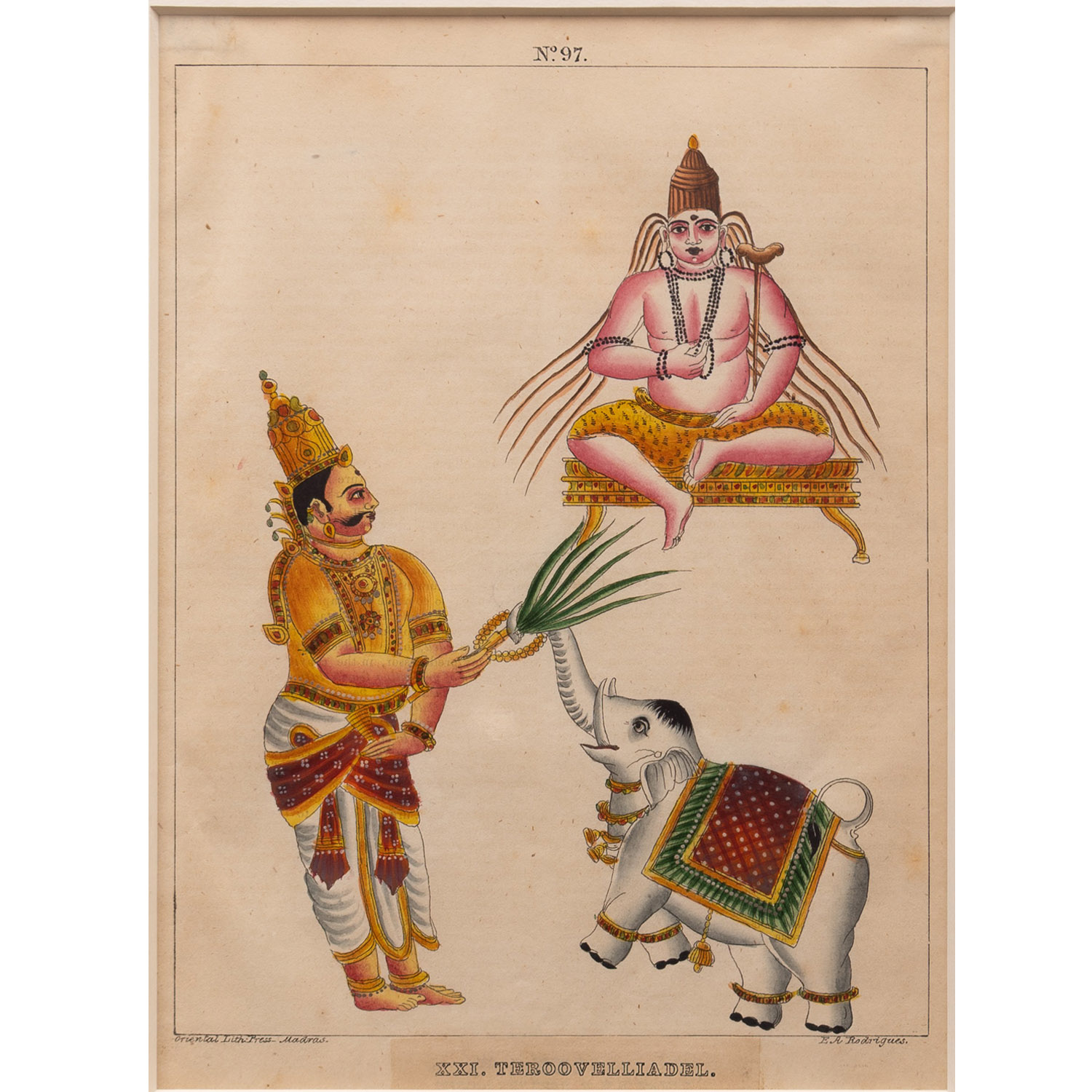 This Plate is from the Deities Worshipped by the natives of British India throughout Hindoostan. These were drawn by the native artists and was one of the earliest lithograph published in Madras, India.