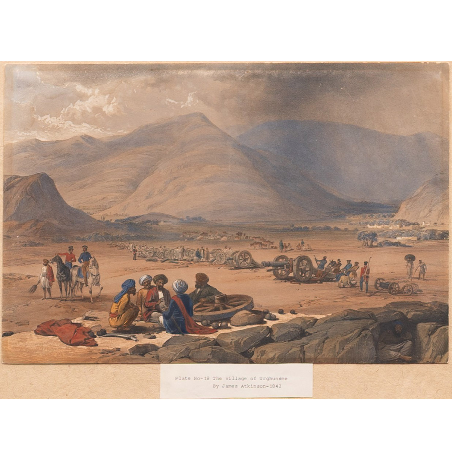 The views were drawn on stone by David Roberts’ lithographers, Louis and James Haghe from sketches made by the Persian scholar and doctor James Atkinson during his services as superintending surgeon to Sir George Pollock’s expedition to Kabul in 1838. This plate is from his work Sketches in Afghaunistan, 1842.